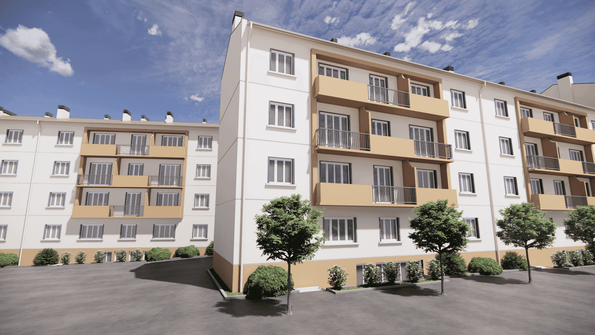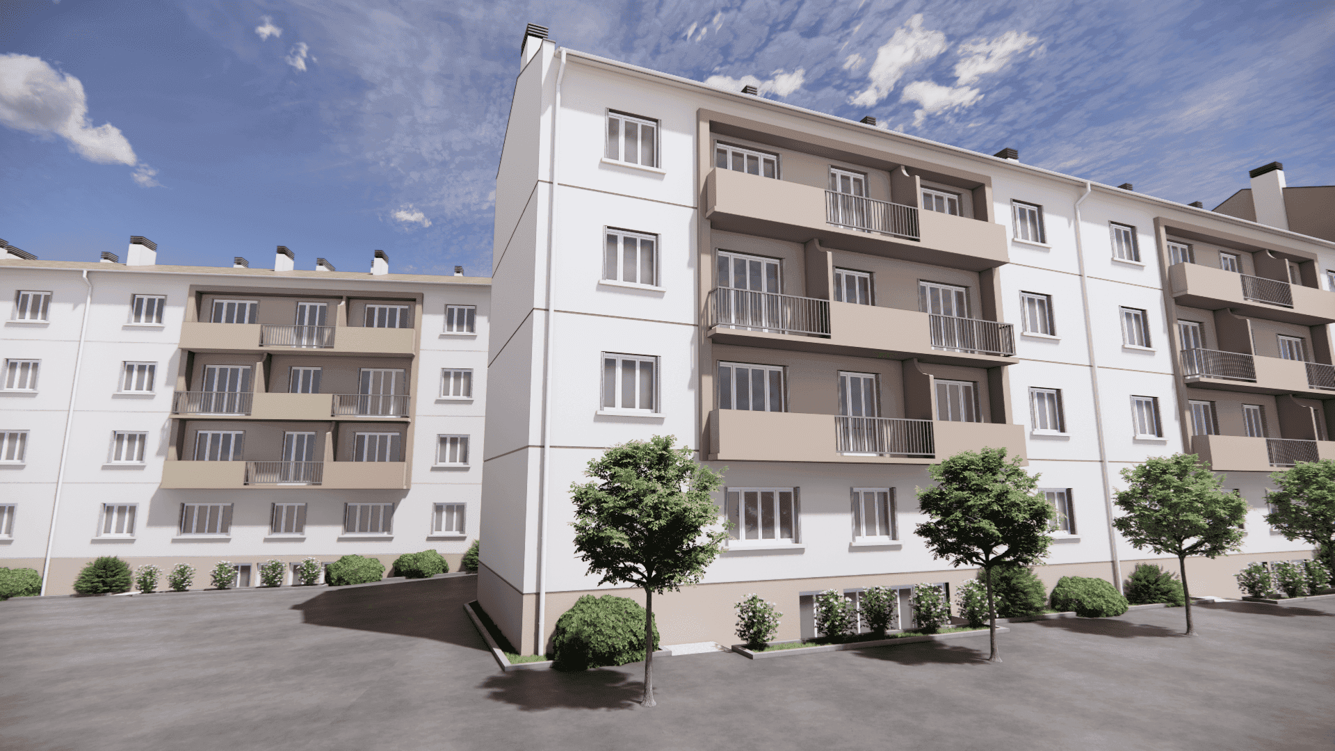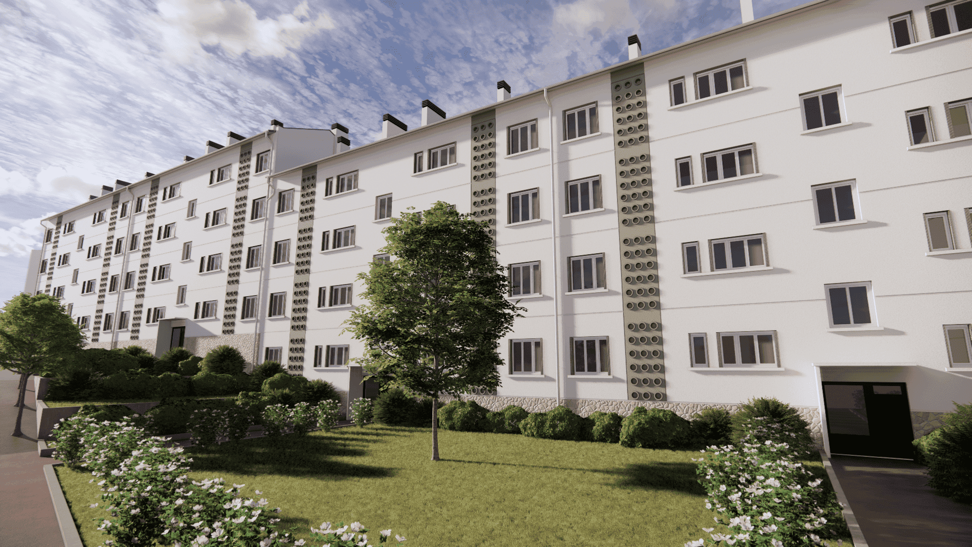 Nous avons réalisé des projections 3D montrant différentes couleurs de volets et de portes, tout en conservant et valorisant les modénatures présentes sur les façades. Ces visuels ont permis aux copropriétaires de mieux se projeter, de comparer les options et d’aboutir à un choix commun avant le lancement des travaux.
